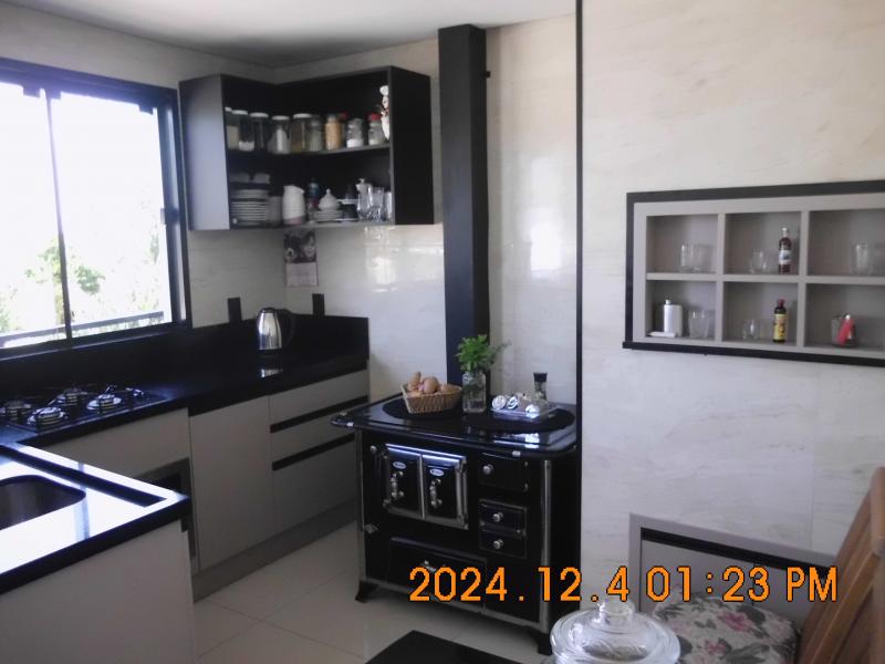 Fica cozinha c/ fogão a lenha. Piso porcelanato, aberturas, escadas , grades, todas em aluminio.