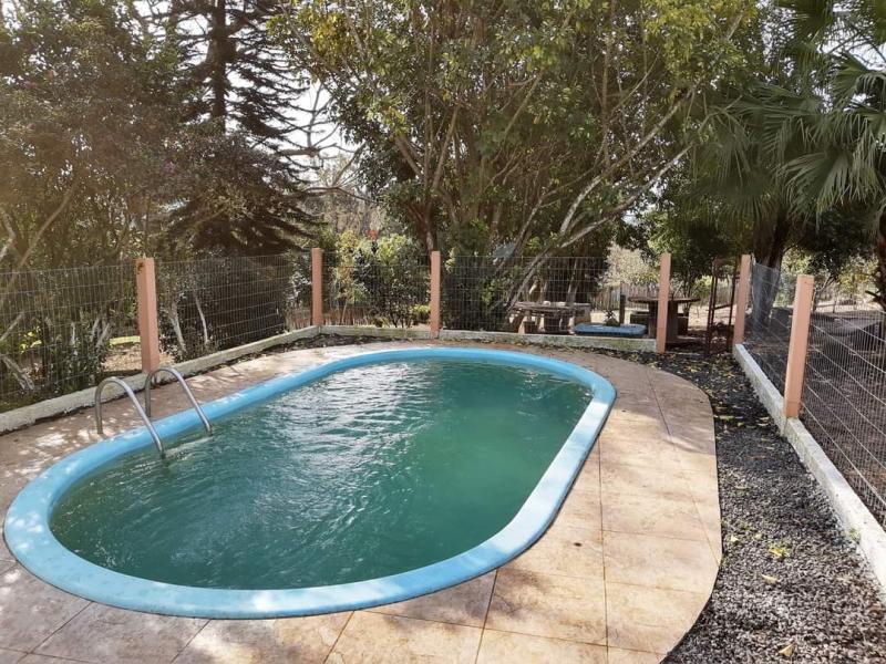 CASA : 4 dormitórios, 2 banheiros, sala de estar, sala de jantar, cozinha c/ fogão a lenha colonial, garagem c/ churrasqueira, piscina, galpão p/ lenha.