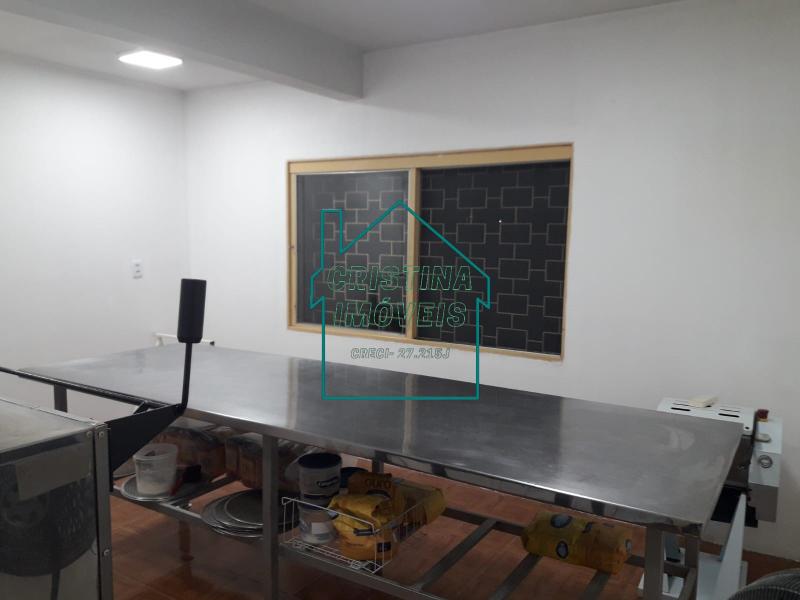 Andar inferior: Espaço amplo hoje adaptado para uma cozinha industrial, cozinha e sala integrada, quarto, banheiro